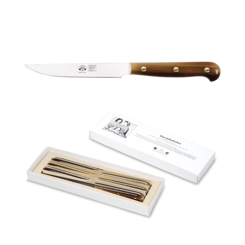 Ogni confezione include 6 coltelli da tavola, confezionati in una pratica scatola di cartone.